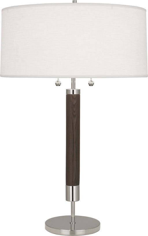 View full detailsRobert Abbey S205 Two Light Table Lamp, Polished Nickel w/Dark Walnuted Wood Column