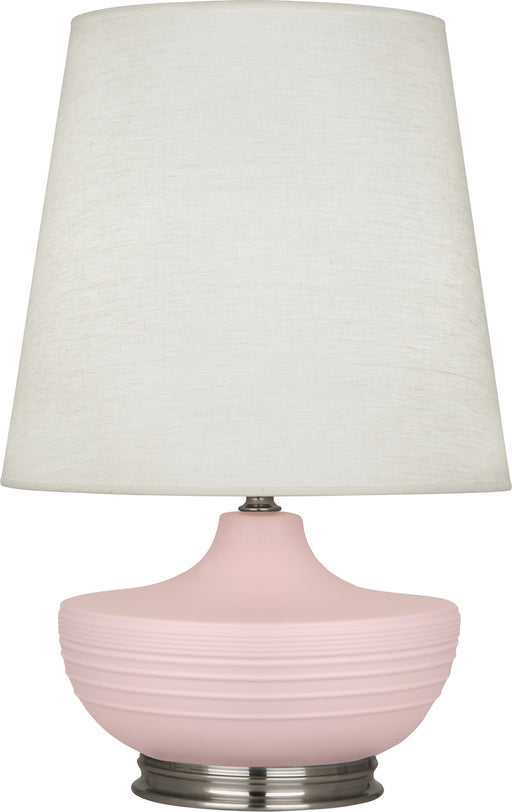 Matte Woodrose Glazed Ceramic With Dark Antique Nickel Accents Michael Berman Nolan Table Lamp With Oyster Linen ShadeDetails:Product Type: Table L...