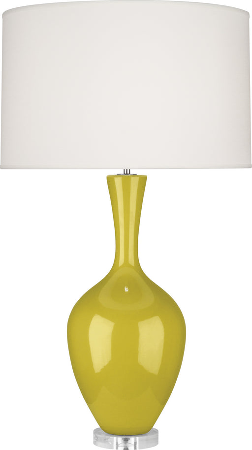 Citron Glazed Ceramic Audrey Table Lamp With Fondine Fabric Shade - The Audrey table lamp provides a saturated pop color! Audrey's curvy design mak...