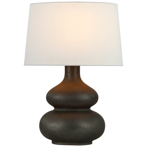 Armato Small Table Lamp in Stained Black Metallic Ceramic with Oval Linen ShadeDetails:Product Type: Table LampsFinish: Stained Black MetallicShade...