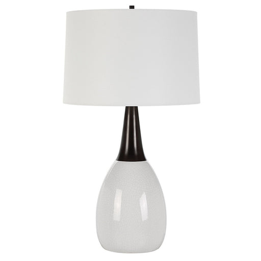 This Unique Table Lamp Seamlessly Blends Elegance And Uniqueness Into One Captivating Design. The Crackled White Ceramic Base Flows Gracefully Into...