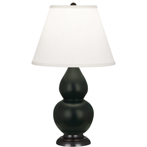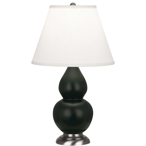 Matte Obsidian Glazed Ceramic With Lucite Base Small Double Gourd Accent Lamp With Pearl Dupioni Fabric Shade - Our Double Gourd collection feature...
