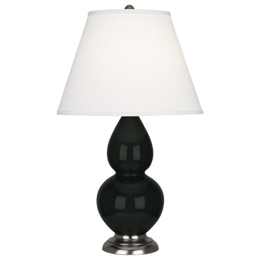 Obsidian Glazed Ceramic With Lucite Base Small Double Gourd Accent Lamp With Pearl Dupioni Fabric Shade - Our Double Gourd collection features a si...