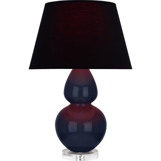 Matte Midnight Blue Glazed Ceramic With Lucite Base Double Gourd Table Lamp With Navy Fabric Shade with Gray Lining - Our Double Gourd collection f...
