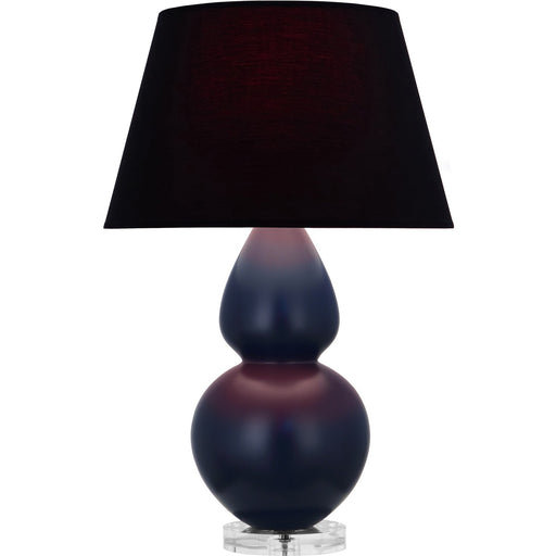 Matte Midnight Blue Glazed Ceramic With Lucite Base Double Gourd Table Lamp With Plum Fabric Shade with Lavender Lining - Our Double Gourd collecti...