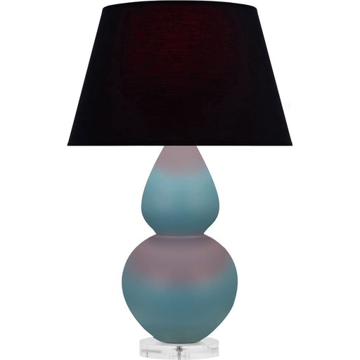 Steel Blue Glazed Ceramic With Lucite Base Double Gourd Table Lamp With Lavender Fabric Shade with Plum Lining - Our Double Gourd collection featur...