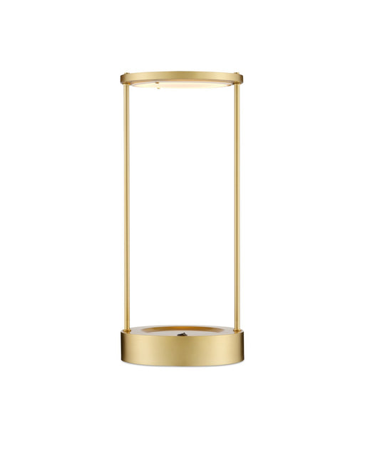 The Sortie Brass Cordless Table Lamp is a gold lamp that is always ready for action. The metal base in a brass finish holds the on/off switch. The ...