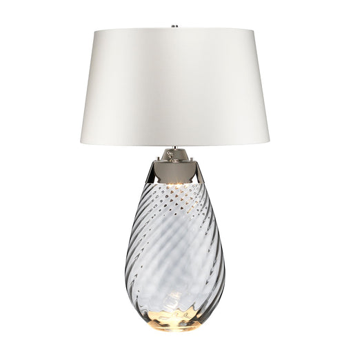 150W 3 way Salisbury glass table lamp with hardback fabric shadeDetails:Product Type: Table LampsFinish: Brushed steel/AmberShade: WhiteRooms: Livi...