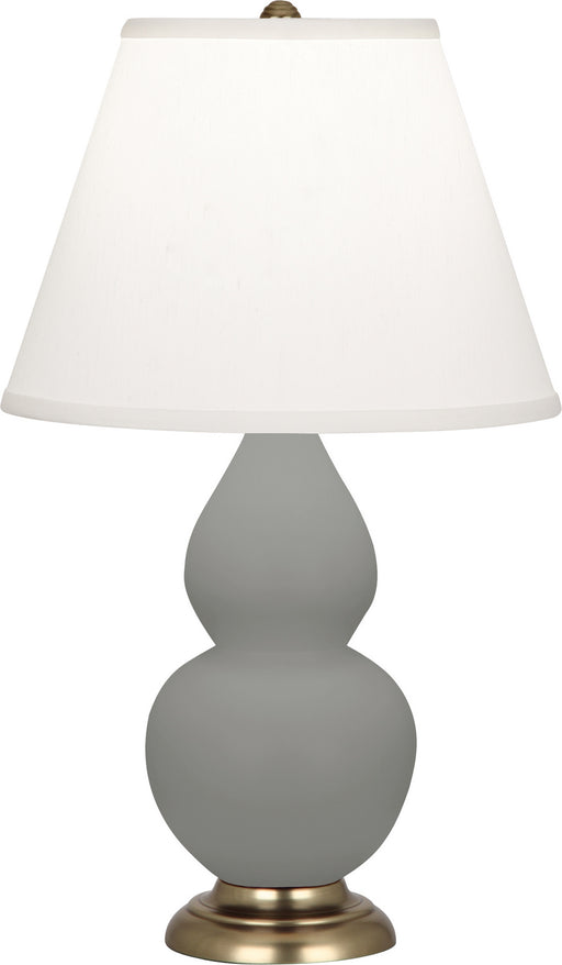 Matte Smokey Taupe Glazed Ceramic Small Double Gourd Accent Lamp With Pearl Dupioni Fabric Shade - Our Double Gourd collection features a simple bu...