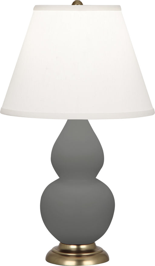 Matte Ash Glazed Ceramic With Antique Brass Finished Accents Small Double Gourd Accent Lamp With Pearl Dupioni Fabric Shade - Our Double Gourd coll...