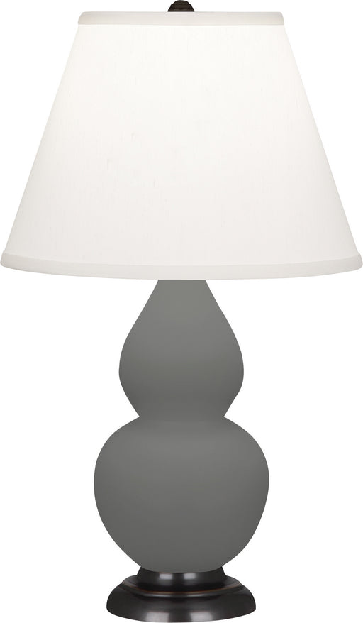 Matte Ash Glazed Ceramic With Lucite Base Small Double Gourd Accent Lamp With Pearl Dupioni Fabric Shade - Our Double Gourd collection features a s...