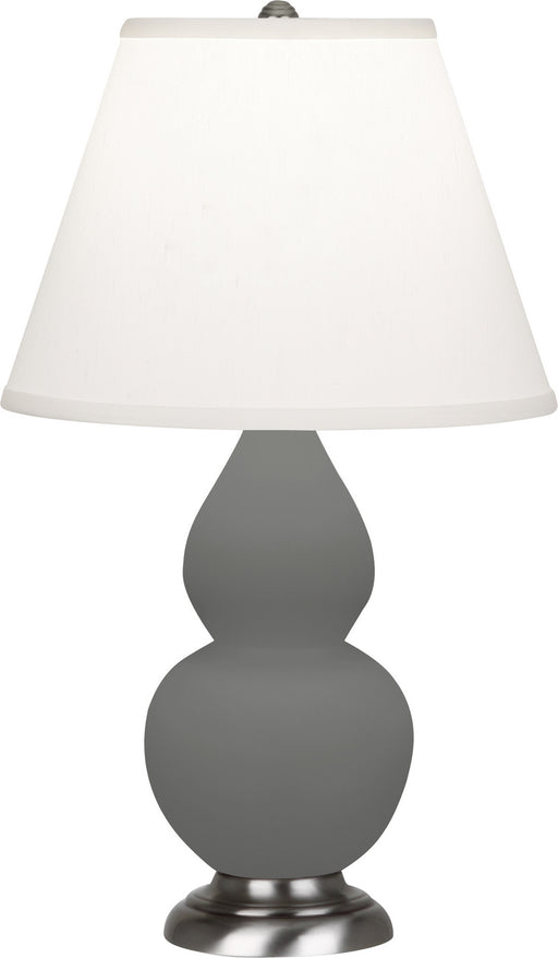Matte Ash Glazed Ceramic With Antique Silver Finished Accents Small Double Gourd Accent Lamp With Pearl Dupioni Fabric Shade - Our Double Gourd col...