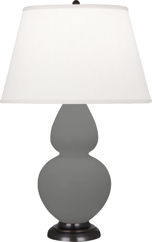 Matte Ash Glazed Ceramic With Deep Patina Bronze Finished Accents Double Gourd Table Lamp With Pearl Dupioni Fabric Shade - Our Double Gourd collec...