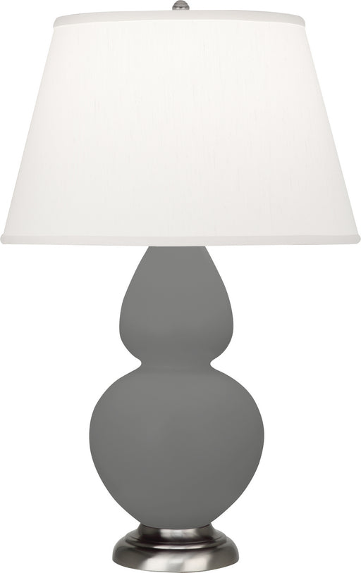 Matte Ash Glazed Ceramic With Antique Silver Finished Accents Double Gourd Table Lamp With Pearl Dupioni Fabric Shade - Our Double Gourd collection...