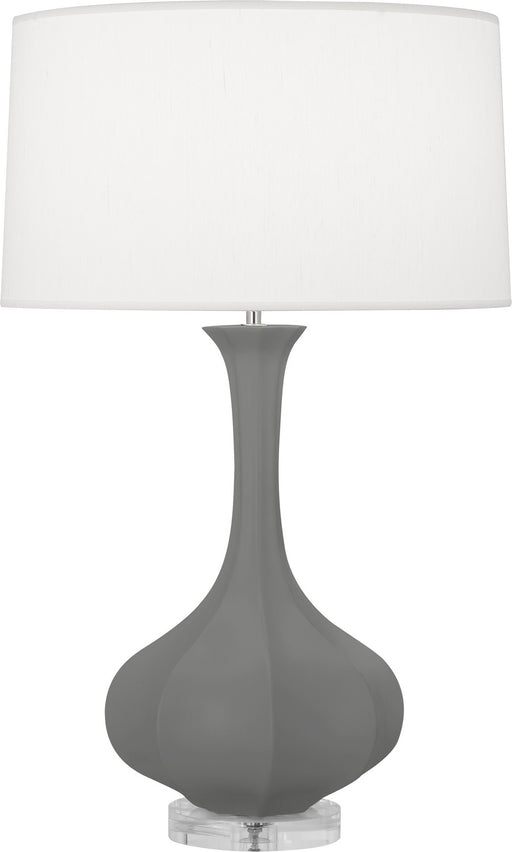 Ash Glazed Ceramic With Lucite Base Pike Table Lamp With Pearl Dupoini Fabric ShadeDetails:Product Type: Table LampsFinish: Matte Ash Glazed Cerami...