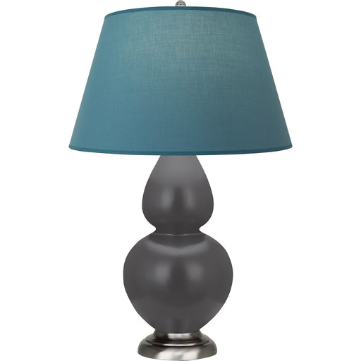 Matte Ash Glazed Ceramic With Antique Silver Finished Accents Double Gourd Table Lamp With Bright Blue Fabric Shade with Gray Lining - Our Double G...