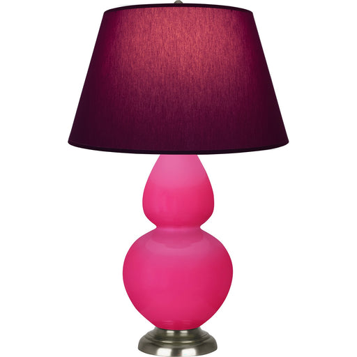 Razzle Rose Glazed Ceramic With Antique Silver Finished Accents Double Gourd Table Lamp With Plum Fabric Shade with Lavender Lining - Our Double Go...