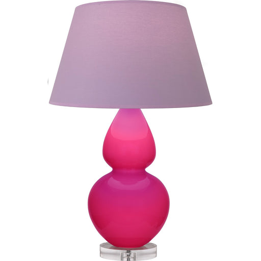 Razzle Rose Glazed Ceramic With Lucite Base Double Gourd Table Lamp With Lavender Fabric Shade with Plum Lining - Our Double Gourd collection featu...