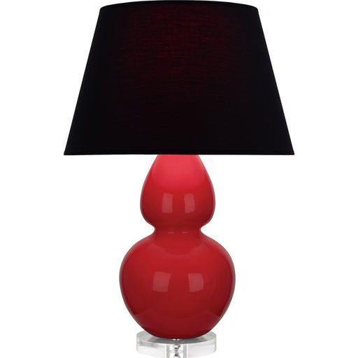 Ruby Red Glazed Ceramic With Lucite Base Double Gourd Table Lamp With Ink Black Fabric Shade with Rose Red Lining - Our Double Gourd collection fea...