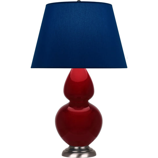 Sangria Glazed Ceramic With Antique Silver Finished Accents Double Gourd Table Lamp With Bright Blue Fabric Shade with Gray Lining - Our Double Gou...