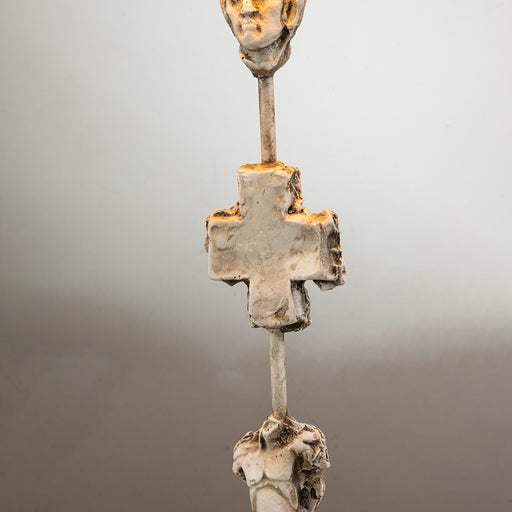 fragment 1 Table Lamp in Bone White. The sculpted body of the piece is accented with a subtle antiquing finish the accentuates the detail of the li...