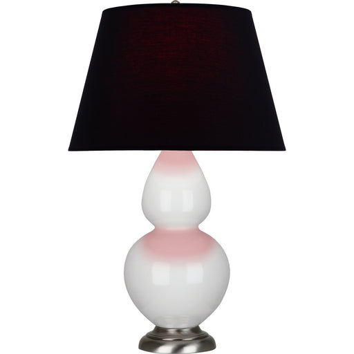 Lily Glazed Ceramic With Antique Silver Finished Accents Double Gourd Table Lamp With Ink Fabric Shade with Rose Red Lining - Our Double Gourd coll...