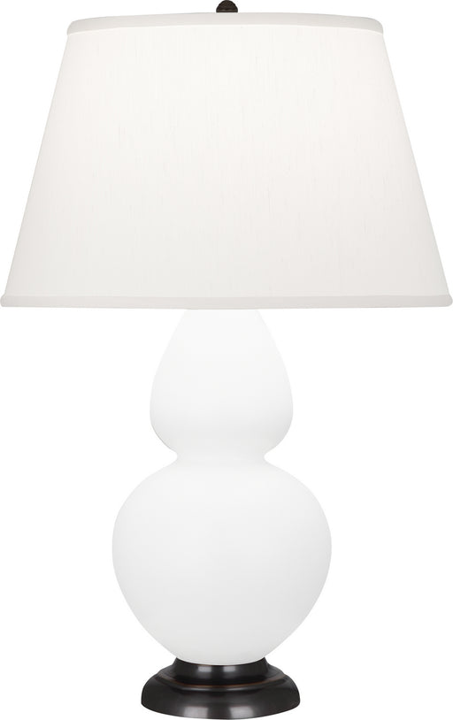 Matte Lily Glazed Ceramic With Deep Patina Bronze Finished Accents Double Gourd Table Lamp With Pearl Dupioni Fabric Shade - Our Double Gourd colle...