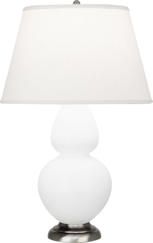 Matte Lily Glazed Ceramic With Antique Silver Finished Accents Double Gourd Table Lamp With Pearl Dupioni Fabric Shade - Our Double Gourd collectio...