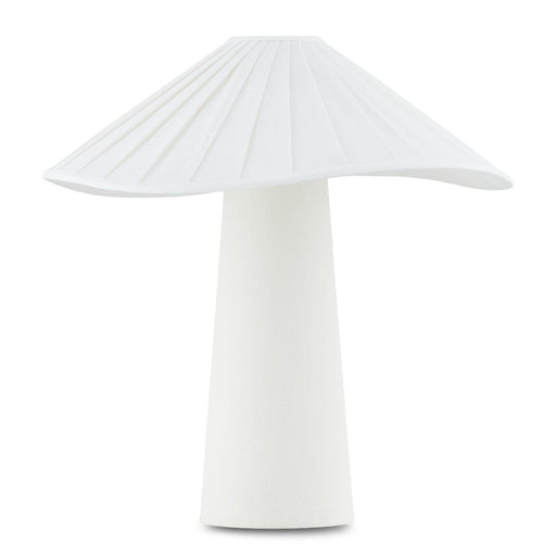 Pleat-like folds ripple down the hand-sculpted Deacon, lending this ceramic table lamp its artisanal charm. The base's chalky white finish is compl...