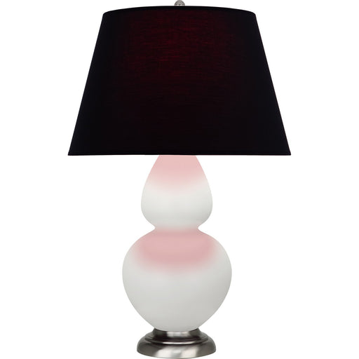 Matte Lily Glazed Ceramic With Antique Silver Finished Accents Double Gourd Table Lamp With Ink Fabric Shade with Rose Red Lining - Our Double Gour...