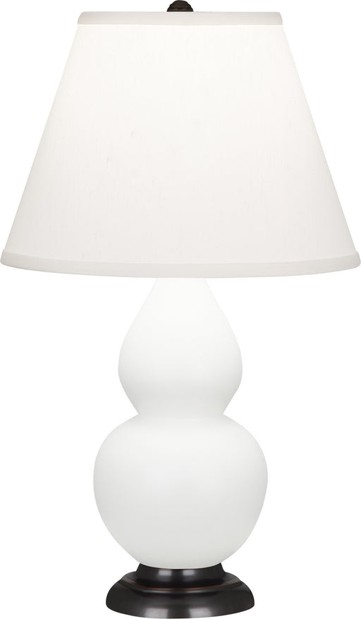 Matte Lily Glazed Ceramic With Deep Patina Bronze Finished Accents Small Double Gourd Accent Lamp With Pearl Dupioni Fabric Shade - Our Double Gour...