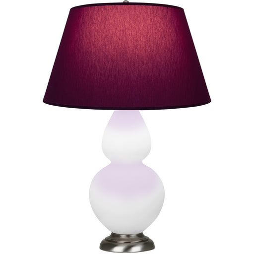 Matte Daisy Glazed Ceramic With Antique Silver Finished Accents Double Gourd Table Lamp With Plum Fabric Shade with Lavender Lining - Our Double Go...