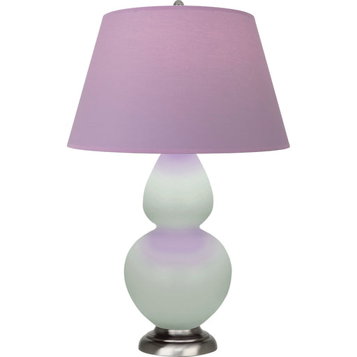 Matte Celadon Glazed Ceramic With Lucite Base Double Gourd Table Lamp With Lavender Fabric Shade with Plum Lining - Our Double Gourd collection fea...