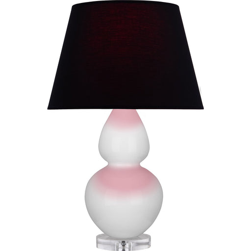 Bone Glazed Ceramic With Lucite Base Double Gourd Table Lamp With Ink Black Fabric Shade with Rose Red Lining - Our Double Gourd collection feature...