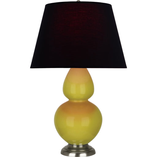 Citron Glazed Ceramic With Antique Silver Finished Accents Double Gourd Table Lamp With Navy Fabric Shade with Gray Lining - Our Double Gourd colle...