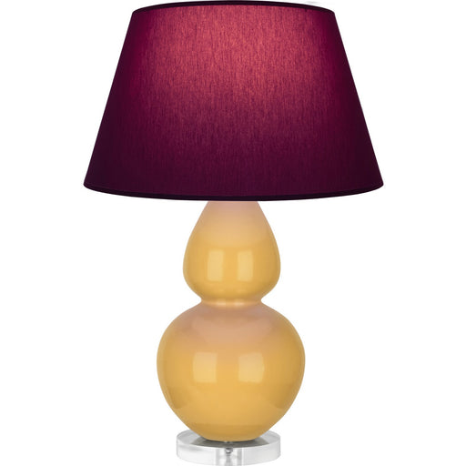 Sunset Yellow Glazed Ceramic With Antique Silver Finished Accents Double Gourd Table Lamp With Plum Fabric Shade with Lavender Lining - Our Double ...