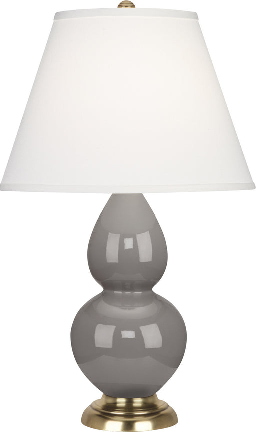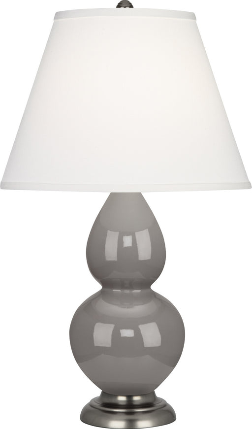 Smokey Taupe Glazed Ceramic Small Double Gourd Accent Lamp With Pearl Dupioni Fabric Shade - Our Double Gourd collection features a simple but grac...