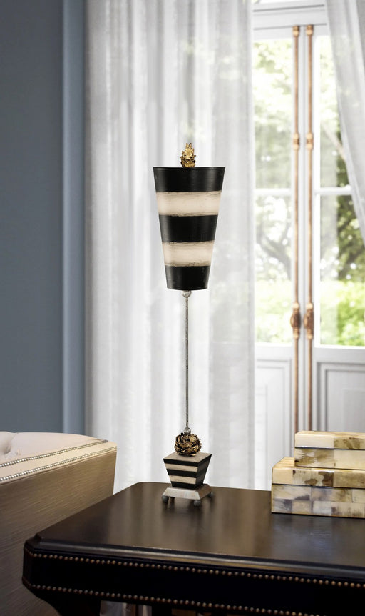 View full detailsLucas + McKearn TA1027 One Light Buffet Lamp, Black/Cream Striped W/Gold/Silver Leaf