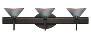 The Kona pendant features a wide cone-shaped glass, that demonstrates contemporary sensibilities. Our Bi-Color glass is a subtly prismatic pressed glass that features a translucent mix of color, where sky blue transitions to a medium red from top to bottom. This dcor is energetic and can be used in various ways. When lit this gives off a light that is functional and vibrant. This glossy handcrafted glass uses a process where every glass is consistently produced using a press mold, keeping variations to a minimum. The vanity fixture is equipped with decorative lamp holders, removable finials, linear rectangular housing, and a removable low profile oval canopy cover. These stylish and functional luminaries are offered in a beautiful brushed Bronze finish.