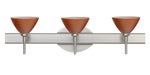 Domi has a classical bell shape that complements aesthetic, while also built for optimal illumination. Our Cherry glass is a soft off-white cased glass that is handcrafted with spiraling strokes of dark red, emphasizing the subtle brush pattern. The reddish rippled design is subdued and harmonious. Unlit, it appears as simply a textured surface like wood grain, but when lit the texture comes alive. The smooth satin finish on the clear outer layer is a result of an extensive etching process, with the texture of the subtle brushing. This blown glass is handcrafted by a skilled artisan, utilizing century-old techniques passed down from generation to generation. The vanity fixture is equipped with decorative lamp holders, removable finials, linear rectangular housing, and a removable low profile oval canopy cover. These stylish and functional luminaries are offered in a beautiful Satin Nickel finish.