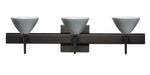 Domi has a classical bell shape that complements aesthetic, while also built for optimal illumination. Our Titan glass is a soft off-white cased glass that is handcrafted with spiraling strokes of silver, emphasizing the subtle brush pattern. The silvery rippled design is subdued and harmonious. Unlit, it appears as simply a textured surface like spun silk, but when lit the texture comes alive. The smooth satin finish on the clear outer layer is a result of an extensive etching process, with the texture of the subtle brushing. This blown glass is handcrafted by a skilled artisan, utilizing century-old techniques passed down from generation to generation. The vanity fixture is equipped with decorative lamp holders, removable finials, linear rectangular housing, and a removable low profile oval canopy cover. These stylish and functional luminaries are offered in a beautiful brushed Bronze finish.