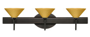 The Kona pendant features a wide cone-shaped glass, that demonstrates contemporary sensibilities. Our Mango Starpoint glass is pressed glass that features small points of clear that project from the mango outer and white inner finish, creating a star-light effect. When lit the glass is vitalizing as well as stylish. The gleaming color can accent any modern or classic dcor. This handcrafted glass uses a process where every glass is consistently produced using a press mold, keeping variations to a minimum. The vanity fixture is equipped with decorative lamp holders, removable finials, linear rectangular housing, and a removable low profile oval canopy cover. These stylish and functional luminaries are offered in a beautiful brushed Bronze finish.