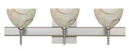 Brella has a classical bell shape that complements aesthetic, while also built for optimal illumination. Our Mocha glass is a pressed glass that features a cream color that is marbleized with brown. This dcor is classic and can be used in various ways. When lit this gives off a light that is functional and soothing. The smooth satin finish on the clear outer layer is a result of an extensive etching process. This handcrafted glass uses a process where every glass is consistently produced using a press mold, keeping variations to a minimum. The vanity fixture is equipped with decorative lamp holders, removable finials, linear rectangular housing, and a removable low profile oval canopy cover. These stylish and functional luminaries are offered in a beautiful Satin Nickel finish.