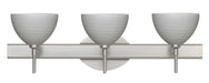 Brella has a classical bell shape that complements aesthetic, while also built for optimal illumination. Our Titan glass is a soft off-white cased glass that is handcrafted with spiraling strokes of silver, emphasizing the subtle brush pattern. The silvery rippled design is subdued and harmonious. Unlit, it appears as simply a textured surface like spun silk, but when lit the texture comes alive. The smooth satin finish on the clear outer layer is a result of an extensive etching process, with the texture of the subtle brushing. This blown glass is handcrafted by a skilled artisan, utilizing century-old techniques passed down from generation to generation. The vanity fixture is equipped with decorative lamp holders, removable finials, linear rectangular housing, and a removable low profile oval canopy cover. These stylish and functional luminaries are offered in a beautiful Satin Nickel finish.