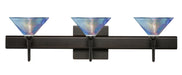 The Kona features a wide cone-shaped glass, that demonstrates contemporary sensibilities. Our Dicro glass is clear blown glass with a technologically advanced dichroic coating applied to the inside. The coating contains multiple micro-layers of metals that create unique optical properties, which effectively alter both the reflected and transmitted light. So unlit, it appears like a mirror, when lit, it becomes translucent with an array of multicolored blue-purple effects. The vanity fixture is equipped with decorative lamp holders, removable finials, linear rectangular housing, and a removable low profile oval canopy cover. These stylish and functional luminaries are offered in a beautiful brushed Bronze finish.