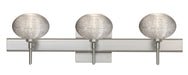 The Lasso is a wide yet compact handcrafted glass, with distinctive ridges, softly radiused to fit gracefully into contemporary spaces. Our Glitter glass is a clear blown and a technologically advanced crystal coating applied to the inside. The coating contains multiple micro-layers of glass particles that create unique prismatic optical properties, which effectively alter both the reflected and transmitted light. So unlit, it appears like a frosted glass, when lit, it becomes alive with dazzling light effects. The vanity fixture is equipped with decorative lamp holders, removable finials, linear rectangular housing, and a removable low profile oval canopy cover. These stylish and functional luminaries are offered in a beautiful Satin Nickel finish.