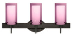 The Pahu is a distinctive double-glass pendant, with an inner opal cylinder centered within a transparent outer glass. Our Trans-Amethyst colored blown glass complements the soft white Opal cased glass, which can suit any classic or modern decor. Opal has a very tranquil glow that is pleasing in appearance, as the Trans-Amethyst glass sparkles with the accents from that glow. The smooth satin finish on the opalâ≢s outer layer is a result of an extensive etching process. This blown glass combination is handcrafted by a skilled artisan, utilizing century-old techniques passed down from generation to generation. The vanity fixture is equipped with decorative lamp holders, removable finials, linear rectangular housing, and a removable low profile oval canopy cover. These stylish and functional luminaries are offered in a beautiful brushed Bronze finish.