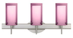 The Pahu is a distinctive double-glass pendant, with an inner opal cylinder centered within a transparent outer glass. Our Trans-Amethyst colored blown glass complements the soft white Opal cased glass, which can suit any classic or modern decor. Opal has a very tranquil glow that is pleasing in appearance, as the Trans-Amethyst glass sparkles with the accents from that glow. The smooth satin finish on the opalâ≢s outer layer is a result of an extensive etching process. This blown glass combination is handcrafted by a skilled artisan, utilizing century-old techniques passed down from generation to generation. The vanity fixture is equipped with decorative lamp holders, removable finials, linear rectangular housing, and a removable low profile oval canopy cover. These stylish and functional luminaries are offered in a beautiful Satin Nickel finish.