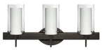 The Pahu is a distinctive double-glass pendant, with an inner opal cylinder centered within a transparent outer glass. The clear blown glass complements the soft white Opal cased glass, which can suit any classic or modern decor. Opal has a very tranquil glow that is pleasing in appearance, as the clear glass sparkles with the accents from that glow. The smooth satin finish on the opalâ≢s outer layer is a result of an extensive etching process. This blown glass combination is handcrafted by a skilled artisan, utilizing century-old techniques passed down from generation to generation. The vanity fixture is equipped with decorative lamp holders, removable finials, linear rectangular housing, and a removable low profile oval canopy cover. These stylish and functional luminaries are offered in a beautiful brushed Bronze finish.