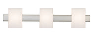 The Tito vanity is a simple, contemporary bath bar featuring handcrafted Opal glass on a low profile plated bracket. Our Opal glass is a soft white cased glass that can suit any classic or modern decor. Opal has a very tranquil glow that is pleasing in appearance. The smooth satin finish on the clear outer layer is a result of an extensive etching process. This modern wall light offers flexible design potential for a variety of bath/vanity decorating schemes. These stylish and functional luminaries are offered in a beautiful Satin Nickel finish.